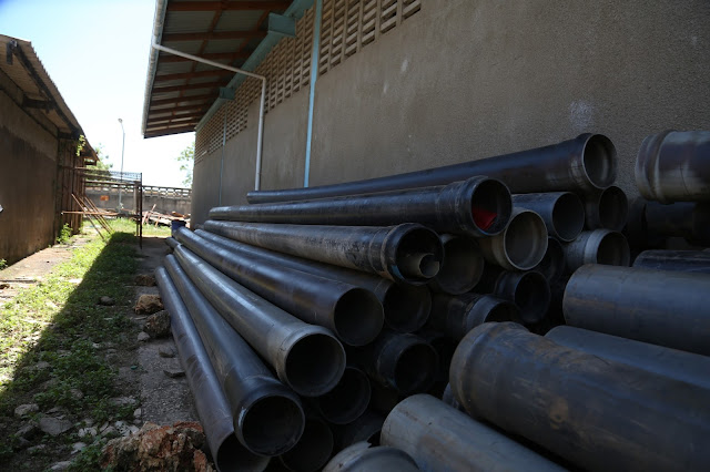 Mabomba ya maji yakiwa kwenye eneo la wazi kwenye bohari hiyo