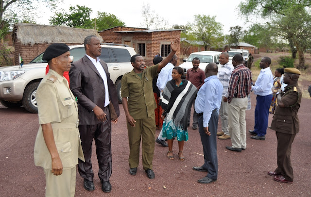Naibu Waziri wa Maliasili na Utalii, Japhet Hasunga (wa pili kushoto) akionyeshwa njia ya kuelekea kwenye maporomoko ya maji ya mto Kimani na Kaimu Meneja wa Pori la Akiba la Mpanga Kipengele, Stanslaus Odhiambo (katikati) alipotembelea maporomoko hayo katika Wilaya ya Makete Mkoani Njombe. Maporomoko hayo ambayo ni kivutio kikubwa cha utalii katika pori hilo yana urefu wa mita zaidi ya 70. Kulia ni Mkuu wa Wilaya ya Mbarali, Reuben Mfune.