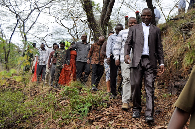 Naibu Waziri wa Maliasili na Utalii, Japhet Hasunga akiongozana na Mkuu wa Wilaya ya Mbarali, Reuben Mfune kwenda eneo la maporomoko ya maji ya mto Kimani ambayo yapo ndani ya Pori la Akiba la Mpanga Kipengele katika Wilaya ya Makete Mkoani Njombe. Maporomoko hayo ambayo ni kivutio kikubwa cha utalii katika pori hilo yana urefu wa mita zaidi ya 70.