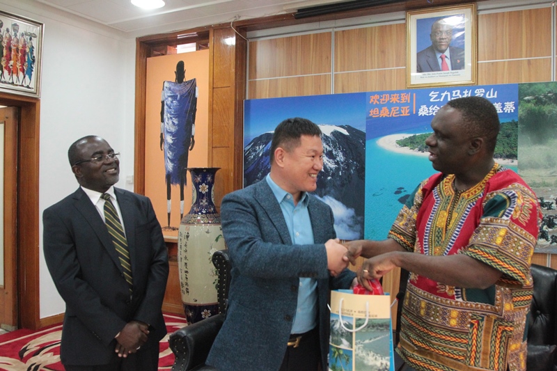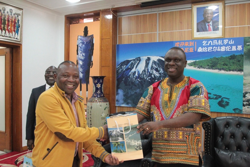 Balozi wa Tanzania nchini China Mhe.Mbelwa kairuki akimkabidhi zawadi Mkurugenzi Mkuu wa Kampuni ya Kiluwa Industrial Group of Companies,Mohamed Said Kiluwa