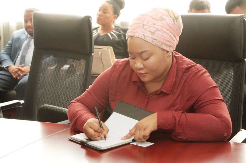 Mkurugezi Mtendaji wa Kampuni ya Kiluwa Industrial Group of Companies,Naima Kiluwa akiandika kilichokuwa kikijiri kwenye mazungumzo hayo mafupi na Balozi Mh.Mbelwa Kairuki mara baada ya kuukaribisha ujumbe huo Ubalozini kwake na kuzungumza mambo mbalimbali yaliyohusu masuala ya uwekezaji kwa Tanzania,na baadae kupata chakula cha pamoja.