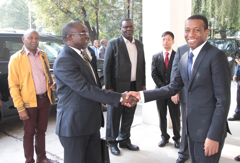 Balozi wa Tanzania nchini China Mhe. Mbelwa Kairuki akifafanua jambo alipokuwa akizungumza na Uongozi wa Kampuni ya Kiluwa Industrial Group of Companies ukiongozwa na Mkurugenzi Mtendaji wa kampuni hiyo Mohamed Kiluwa (pichani kulia) pamoja na viongozi Waandamizi wa Serikali kutoka mkoa wa Pwani wakiongozwa na Katibu Tawala mkoa wa Pwani Zuberi Semataba mapema leo katika Ofisi za Ubalozi huo. Ujumbe huo umewasili mjini Beijing, China kushiriki Kongamano kubwa la uwekezaji wa Viwanda linalotarajiwa kufanyika mjini humo kesho Oktoba 25, 2017 .