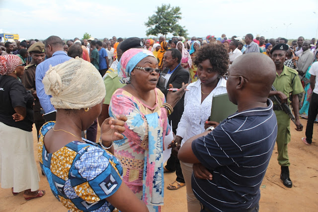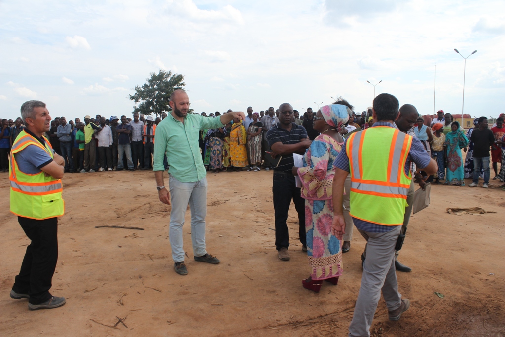 Mkuu wa wilaya ya Kibaha, Asumpter Mshama akaribishwa na uongozi wa kampuni ya ujenzi wa reli ya Kisasa ya Yapi Markezi kutoka Uturuki ili aweze kuongea na vijana wasotea ajira walioweka kambi yao kijiji cha Soga-Kibaha, Pwani.