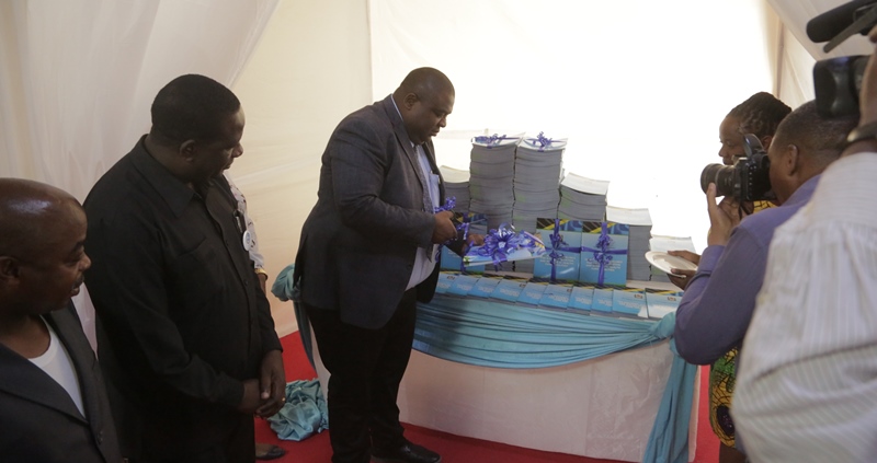 Mkurugenzi wa Idara ya Uratibu wa Sekta kutoka Ofisi ya Rais, Tawala za Mikoa na Serikali za Mitaa (OR – TAMISEMI), Dkt. Andrew Komba ambaye pia ni mgeni rasmi akikata utepe kuzindua Jarida lenye Mwongozo wa Taifa wa Huduma za Maji na Usafi wa Mazingira katika vituo vya afya,mapema leo mjini Dodoma,uzinduzi wa jarida hilo ni sehemu ya kuelekea kilele cha uzinduzi wa kampeni ya Unawaji Mikono kwa vituo vya Afya itakayojulikana kwa jina la NIPO TAYARI awamu ya pili,Ambapo katika uzinduzi wa kampeni hiyo itakayozinduliwa rasmi Desemba 7,2017 mkoani Dodoma,Mgeni rasmi anatarajiwa kuwa Makamu wa Rais Mama samia Suluh Hassan