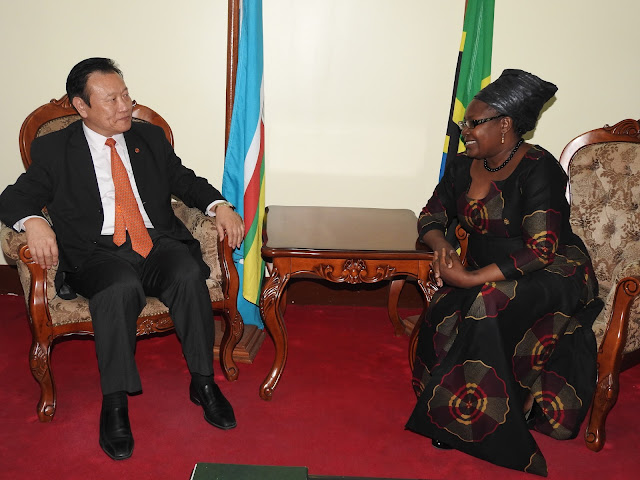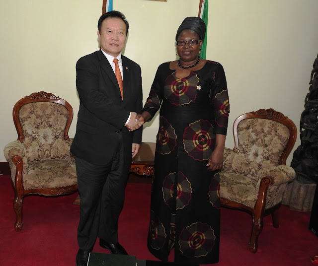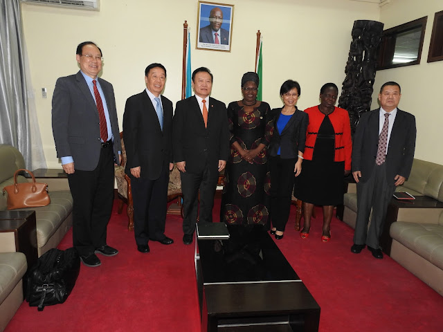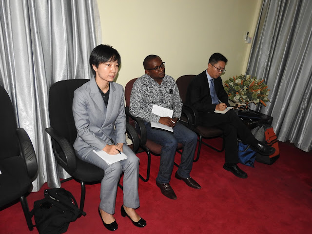Sehemu ya ujumbe uliofuatana na Mhe. CAO Weizhou wakifuatilia mazungumzo. Wa pili kutoka kulia ni Balozi wa China nchini, Mhe. Wang Ke. |