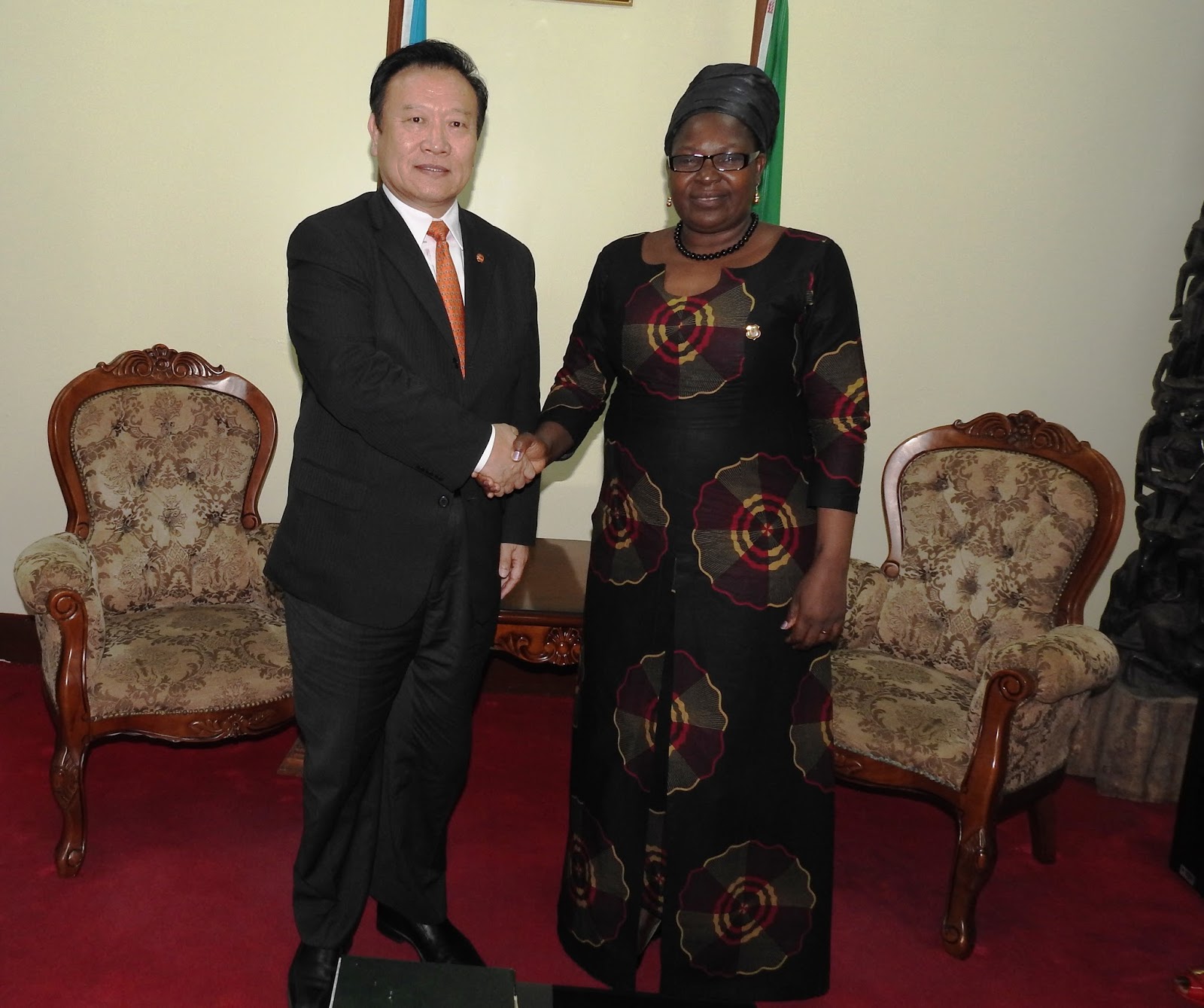 Mhe. Dkt. Kolimba akiagana na Mhe. CAO mara baada ya kumaliza mazungumzo yao. |