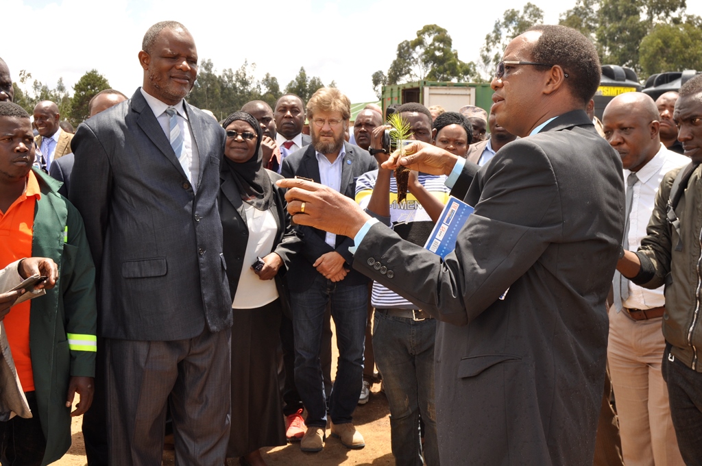 Mkurugenzi wa Idara ya Misitu na Nyuki, Wizara ya Maliasili na Utalii, Dk. Ezekiel Mwakalukwa (kulia) akiongoza hafla hiyo ya ufunguzi.[/caption]