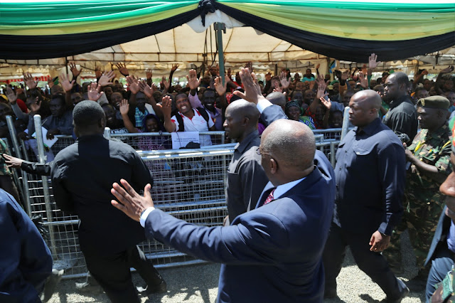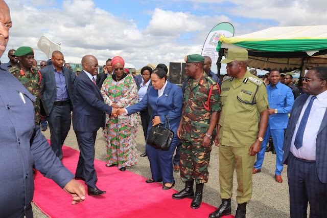 Rais wa Jamhuri ya Muungano wa Tanzania Dkt. John Pombe Magufuli akiwasili katika sherehe za kuzindua rasmi ukuta kuzunguka migodi ya Tanzanite eno la Mirelani wilaya ya Simanjiro mkoa wa Manyara leo Aprili 6, 2018