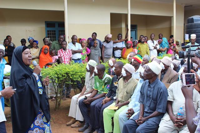 MKUU wa wilaya ya Muheza Mhandisi Mwanasha Tumbo akizungumza na wananchi wa wilaya hiyo waliofanyiwa uchunguzi wa matatizo ya macho wakati wa zoezi la kufunga kambi ya matibabu ya tiba ya macho iliyoendeshwa na Taasisi ya isiyokuwa ya kiserikali ya Medewell Health Centre kwenye kituo cha Afya cha Ubwari wilayani Muheza