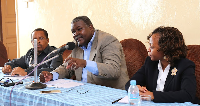 Bw. Mbundi akijibu swali lililoulizwa na Bw. Shehe (hayupo pichani). |