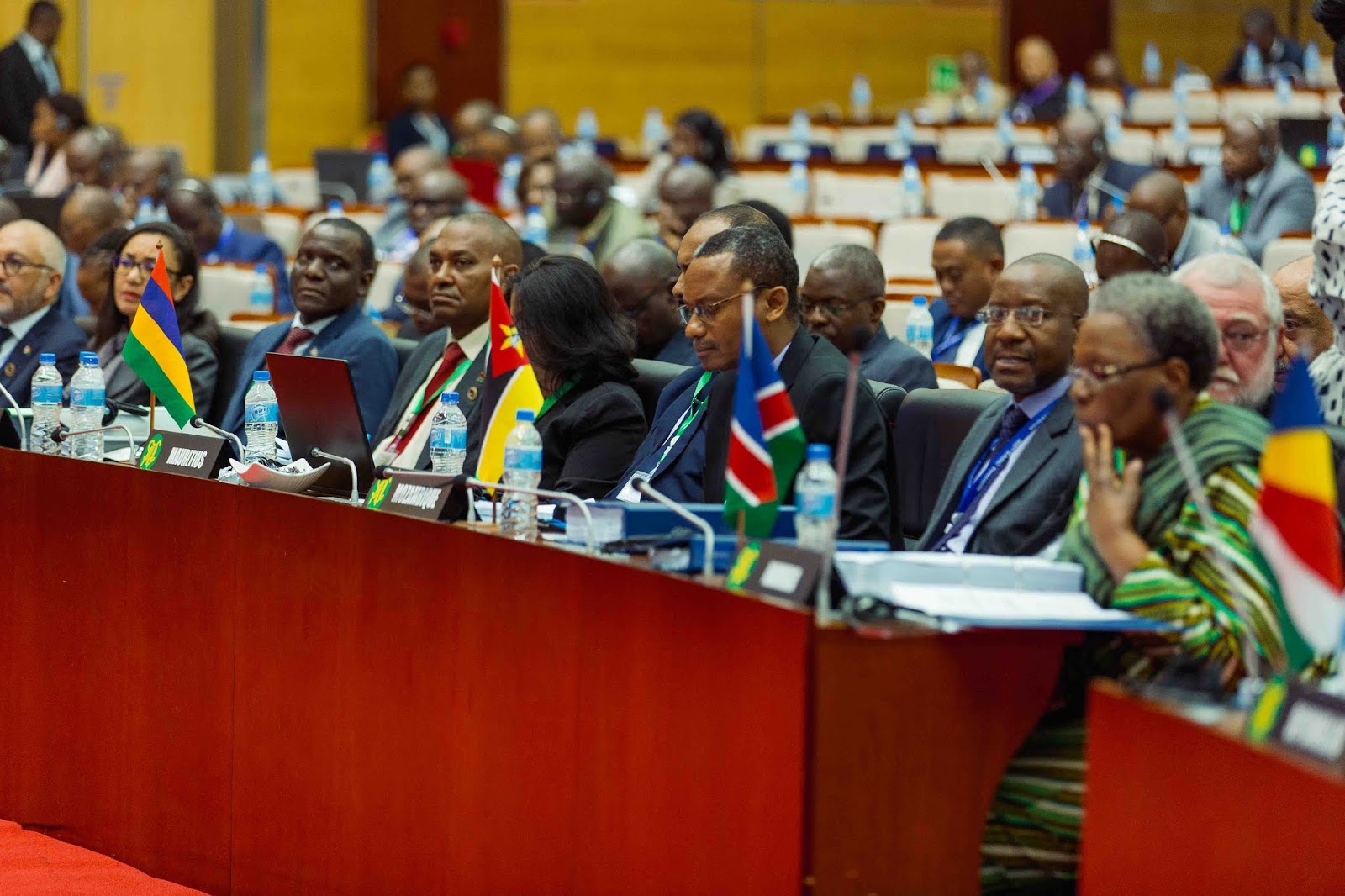 Baadahi ya Mawaziri wa Jumuiya ya Maendeleo Kusini mwa Afrika (SADC) wakifuatilia hotuba ya Waziri wa Mambo ya Nje na Ushirikiano wa Afrika Mashariki, Profesa Palamagamba Kabudi.