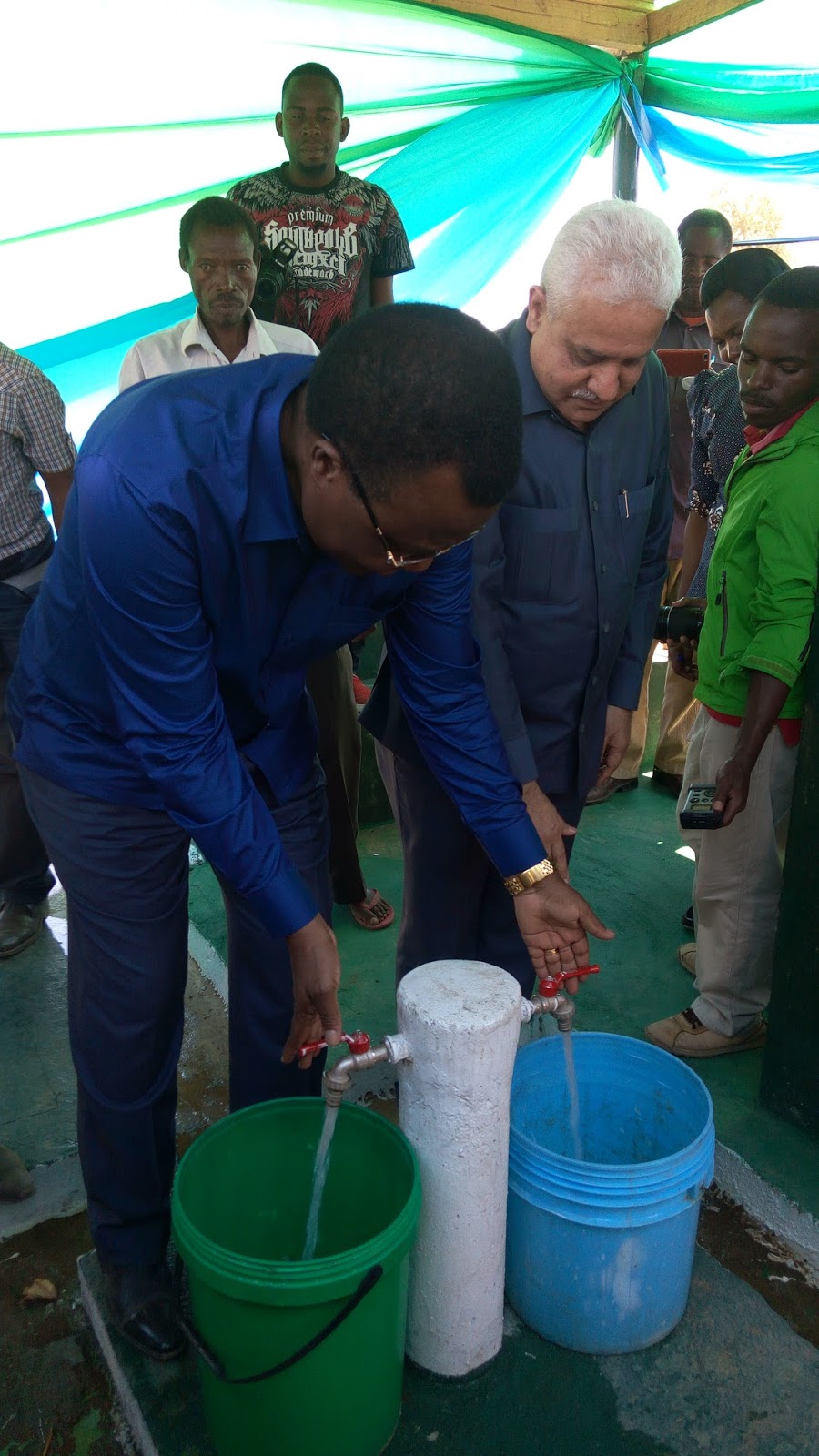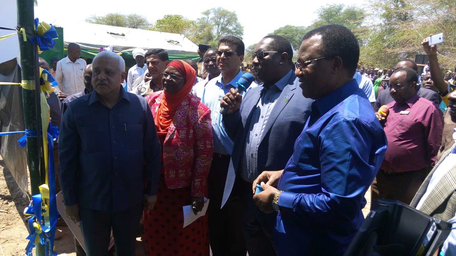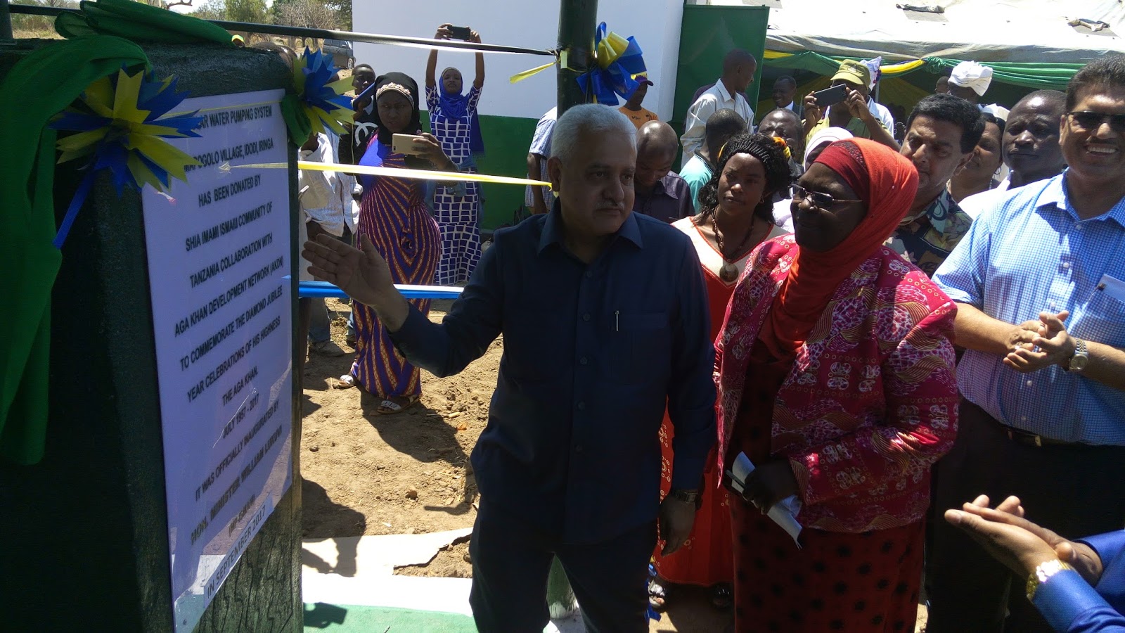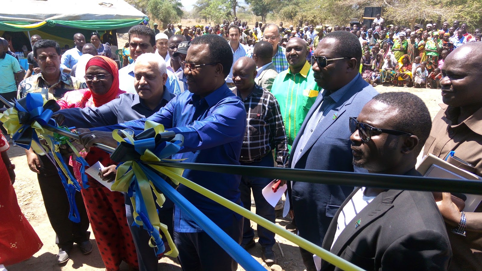 | Viongozi wakifuatilia uzinduzi wa visima vilivyotolewa msaada na Agakhan |