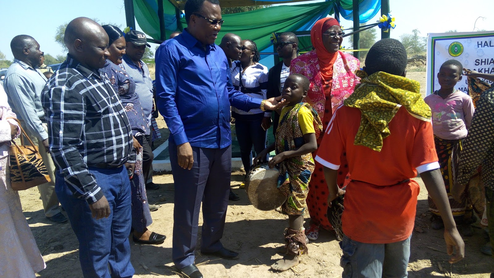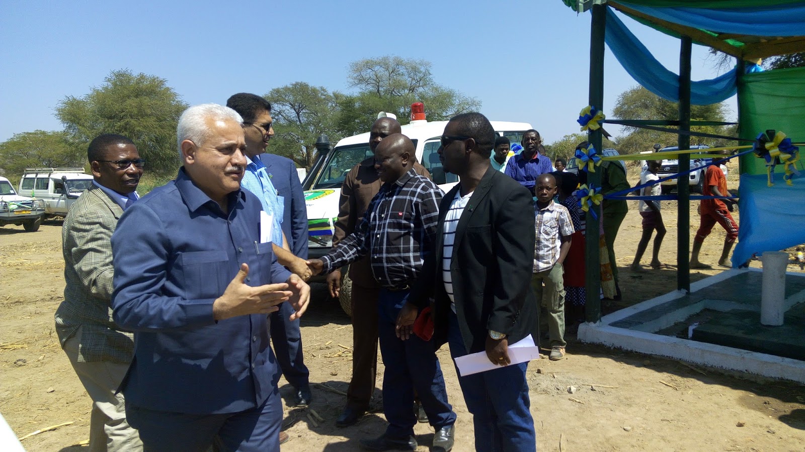| Makamu wa Rais wa Ismailia nchini Tanzania Kamal Khimji akisalimiana na viongozi mbali mbali baada ya kuwasilia katika sherehe ya uzinduzi wa visima |
