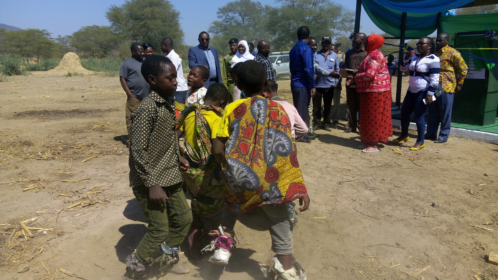 | Bango la kisima cha Ikorongo likizinduliwa katika hafla hiyo |