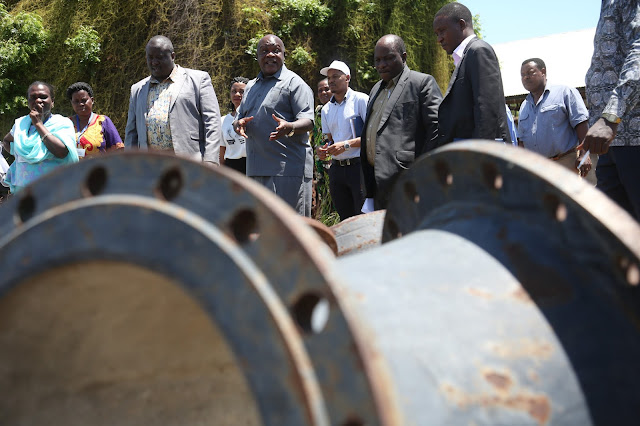 Waziri Kamwelwe, na ujumbe wake akiendelea na ukaguzi wa vifaa vya maji