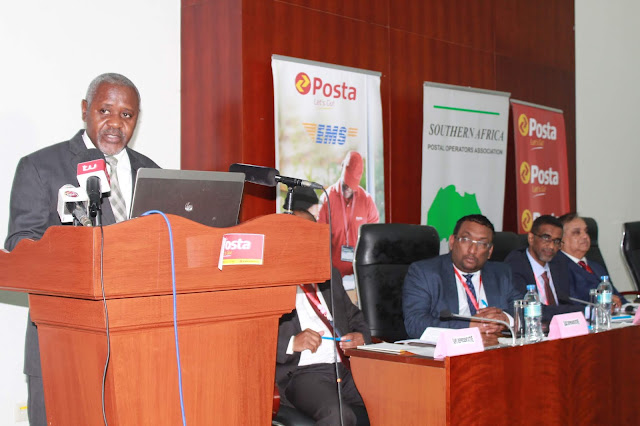 Mgeni rasmi Naibu Waziri wa Ujenzi, Uchukuzi na Mawasiliano (Uchukuzi na Mawasiliano) Mhandisi Atashasta Nditiye (wa tatu kulia) akiwa meza kuu pamoja na baadhi ya wawakilishi wa Umoja wa Posta kwa nchi za Kusini mwa Afrika (SAPOA), katika mkutano wa umoja huo, alioufungua leo, ukumbi wa mikutano wa Kimataifa wa Mwalimu J.K Nyerere jijini Dar es Salaam. Kulia ni Kaimu Postamasta Mkuu wa Shirika la Posta Tanzania (TPC), Hassan Mwan'gombe na wa pili ni Mwenyekiti wa Bodi ya TPC, Kanali Mstaafu, Dk. Haruni Kondo. Baadhi ya wawakilishi kutoka DHL ambao ni wafadhili wa mkutano huo wakifuatilia maelezo mbalimbali kutoka kwa wawakilishi wa nchi mbalimbali za umoja huo. Wawakilishi kutoka Shirika la Posta Tanzania (TPC) wakiskiliza kwa makini maelezo mbalimbali yaliyokuwa yakitolewa na wawakilishi wa nchi za umoja huo, wakati wa ufunguzi wa mkutano huo. Kutoka kushoto ni Kaimu Meneja Uendeshaji wa Biashara, Mwanaisha Saidi, Kaimu Meneja Rasilimali za Shirika, Macrice Mbodo na Meneja Huduma za Fedha, Rehema Mbunda. Baadhi ya wawakilishi kutoka nchi za Kusini mwa Afrika zilizounda umoja huo, wakifuatilia kwa makini hotuba na maelezo mbalimbali yaliyokuwa yakitolewa katika mkutano huo. Baadhi ya wawakilishi wa umoja wa SAPOA, kutoka nchi za Kusini mwa Afrika, wakifuatilia kwa makini mkutano huo. Mtendaji Mkuu wa Posta wa Mauritius, Giandev Moteea, akitoa hotuba yake katika mkutanoni huo.