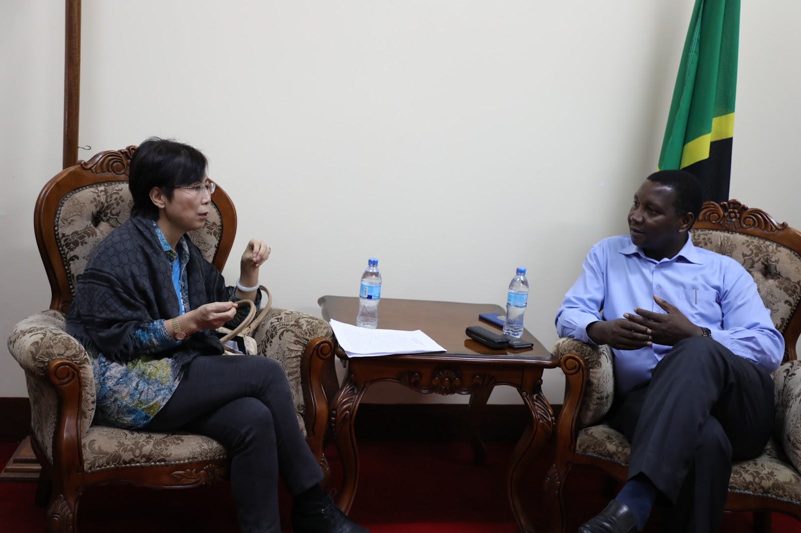 | Katibu Mkuu wa Wizara ya Mambo ya Nje na Ushirikiano wa Afrika Mashariki, Prof. Adolf Mkenda akizungumza na Balozi wa China nchini, Mhe. Wang Ke kuhusu Mkutano wa Wakuu wa Nchi wa Jukwaa la Ushirikiano wa Afrika na China (FOCAC) utakaofanyika mwezi Septemba, 2018 nchini China. Mkutano huo ambao utajadili masuala mbalimbali kwa maendeleo ya Bara la Afrika utatanguliwa na vikao vya maafisa waandamizi na vile vya mawaziri. Kikao kati ya Prof. Mkenda na Balozi Wang Ke kimefanyika Wizarani tarehe 21 Aprili, 2018 |
