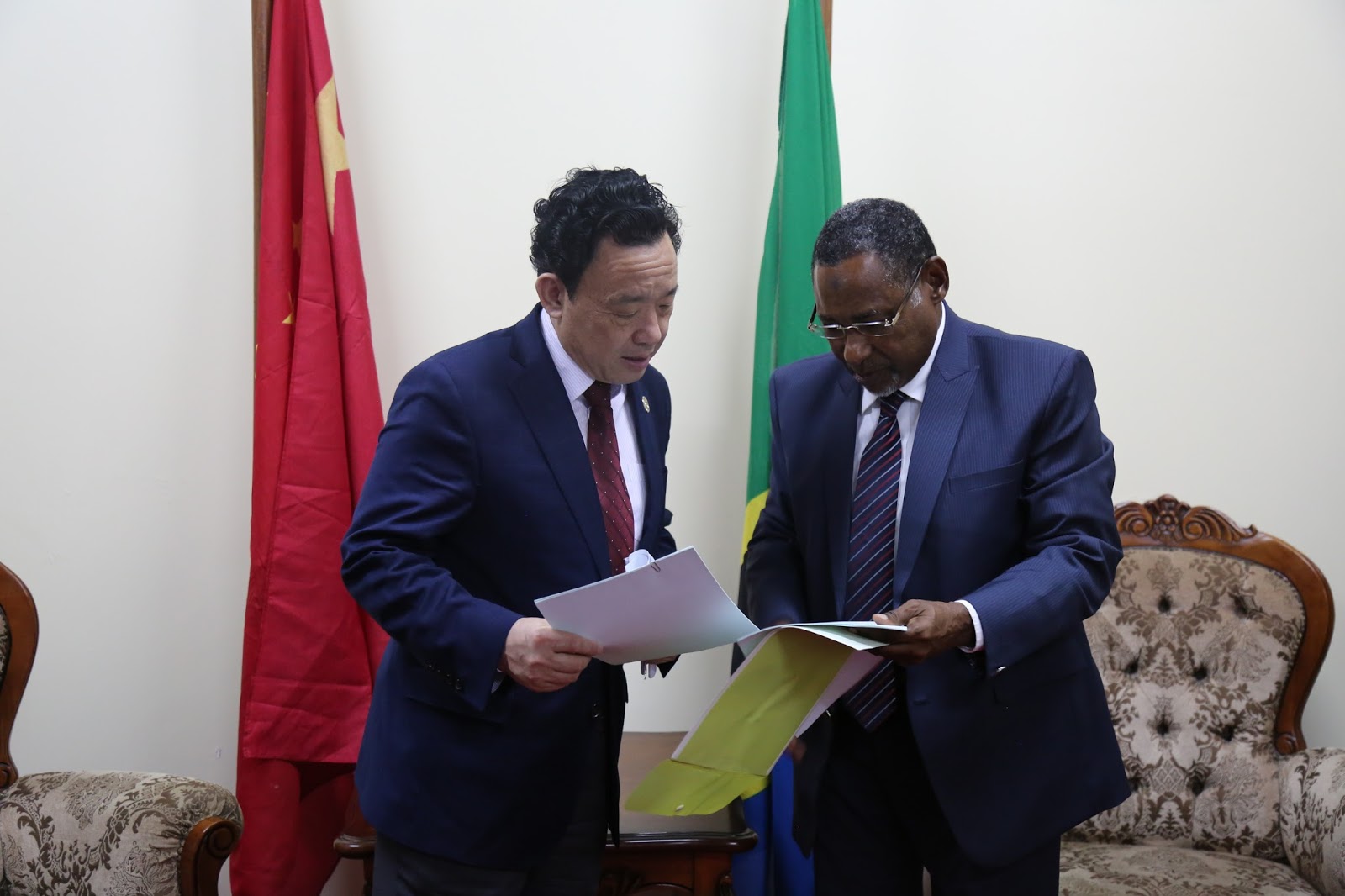 Mhe. Hamad Rashid na Dkt. QU kwa pamoja wakipitia baadhi ya nyaraka za ushirikiano |