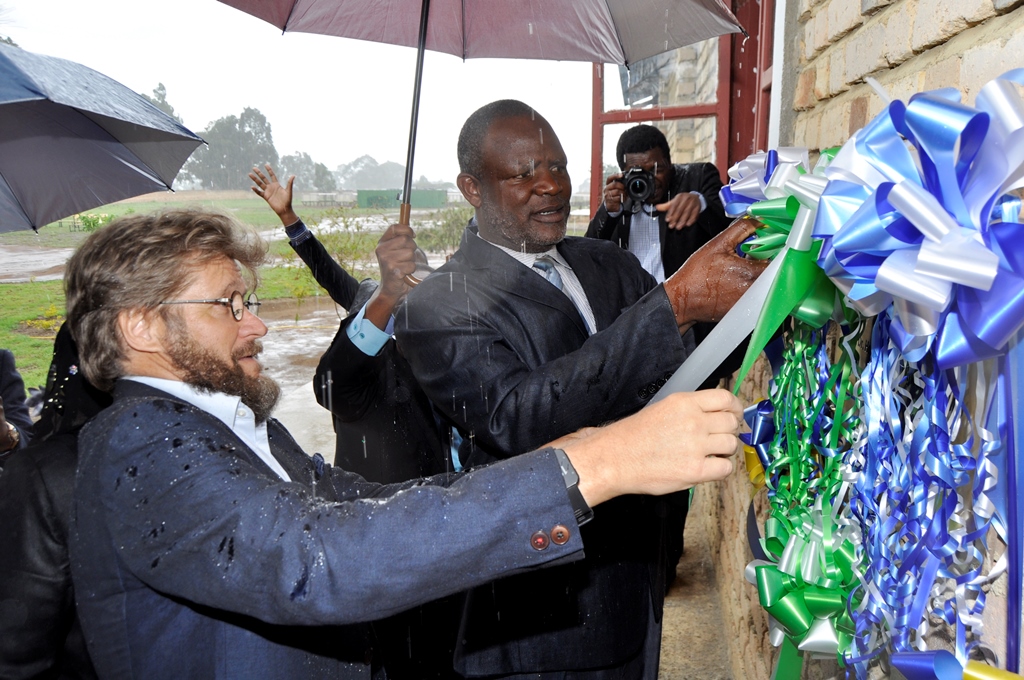 Naibu Waziri wa Maliasili na Utalii, Mhe. Japhet Hasunga (kulia) na Balozi wa Finland nchini, Mhe. Peka Huka wakikata utepe kuashiria ufunguzi rasmi wa Kituo cha Mafunzo ya Misitu na Uchakataji wa Magogo kilichoanzishwa mwezi Desemba, 2016 katikamji wa Mafinga, Wilaya ya Mufindi Mkoani Iringa chini ya ufadhili wa Serikali ya Finland katika hafla iliyofanyika jana mkoani humo.[/caption]