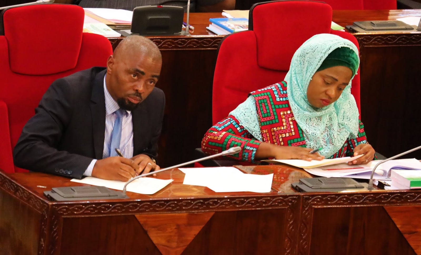 Naibu Waziri wa Kilimo Mhe Omary Mgumba (Mb) pamoja na Naibu waziri wa Nishati Mhe Subira Mgalu (Mb) wakifuatilia mkutano wa kumi na tano wa Bunge la Bajeti Jijini Dodoma leo tarehe 10 Mei 2019.