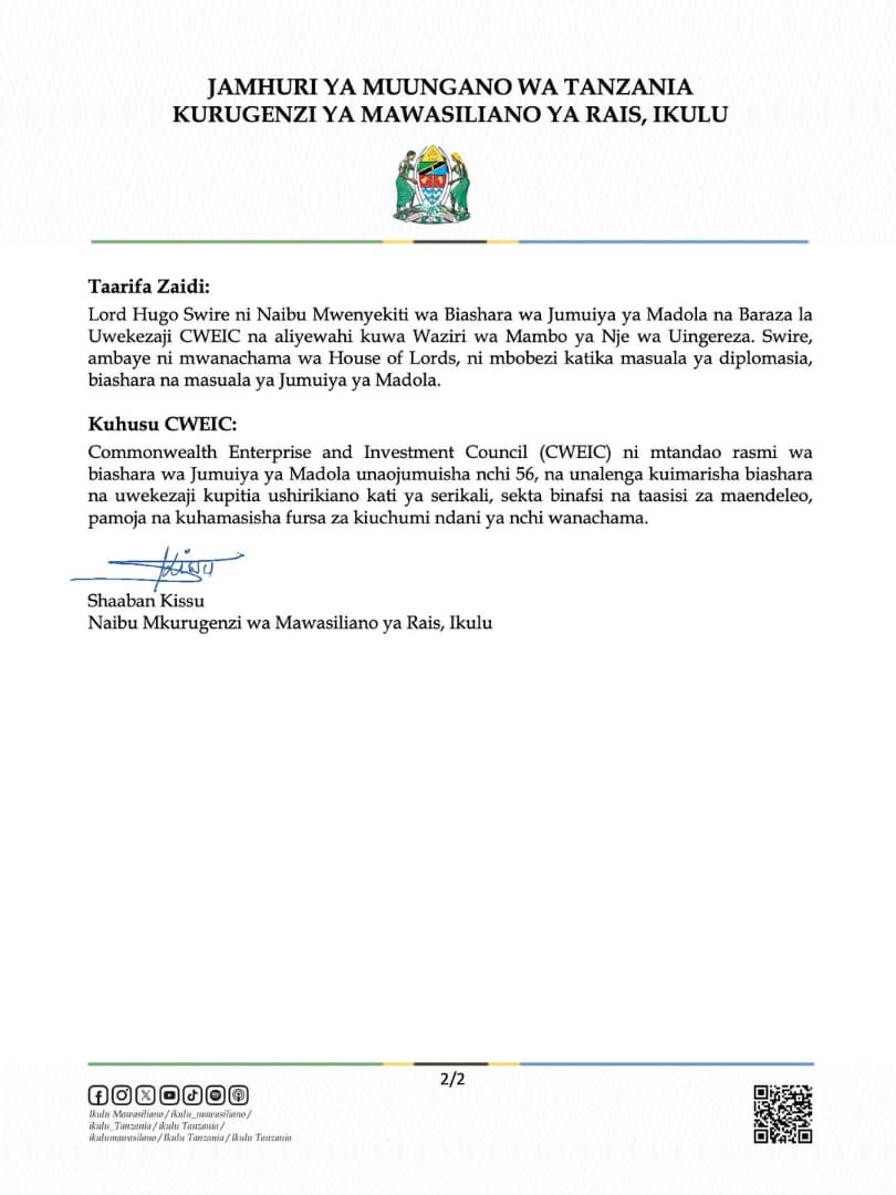 Rais Samia Azungumza na Naibu Mwenyekiti wa Biashara ya Jumuiya ya Madola na Bar...