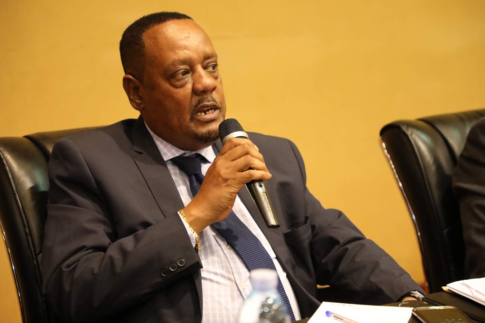 | Balozi Mugoya na Bw. Mbilinyi wakiwa katika meza kuu kabla hawajasoma hotuba za ufunguzi. |